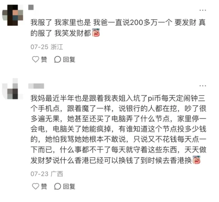 더 많은 Pi 코인을 얻고 컴퓨팅 파워를 가속화할 준비를 하기 위해 일부 중년 및 노년 Pi 친구들은 "업계 내부자"로부터 가속기로 노드를 구매하는데, 이는 가족의 저축과 은퇴 자금을 빠르게 소진시킬 수 있습니다.