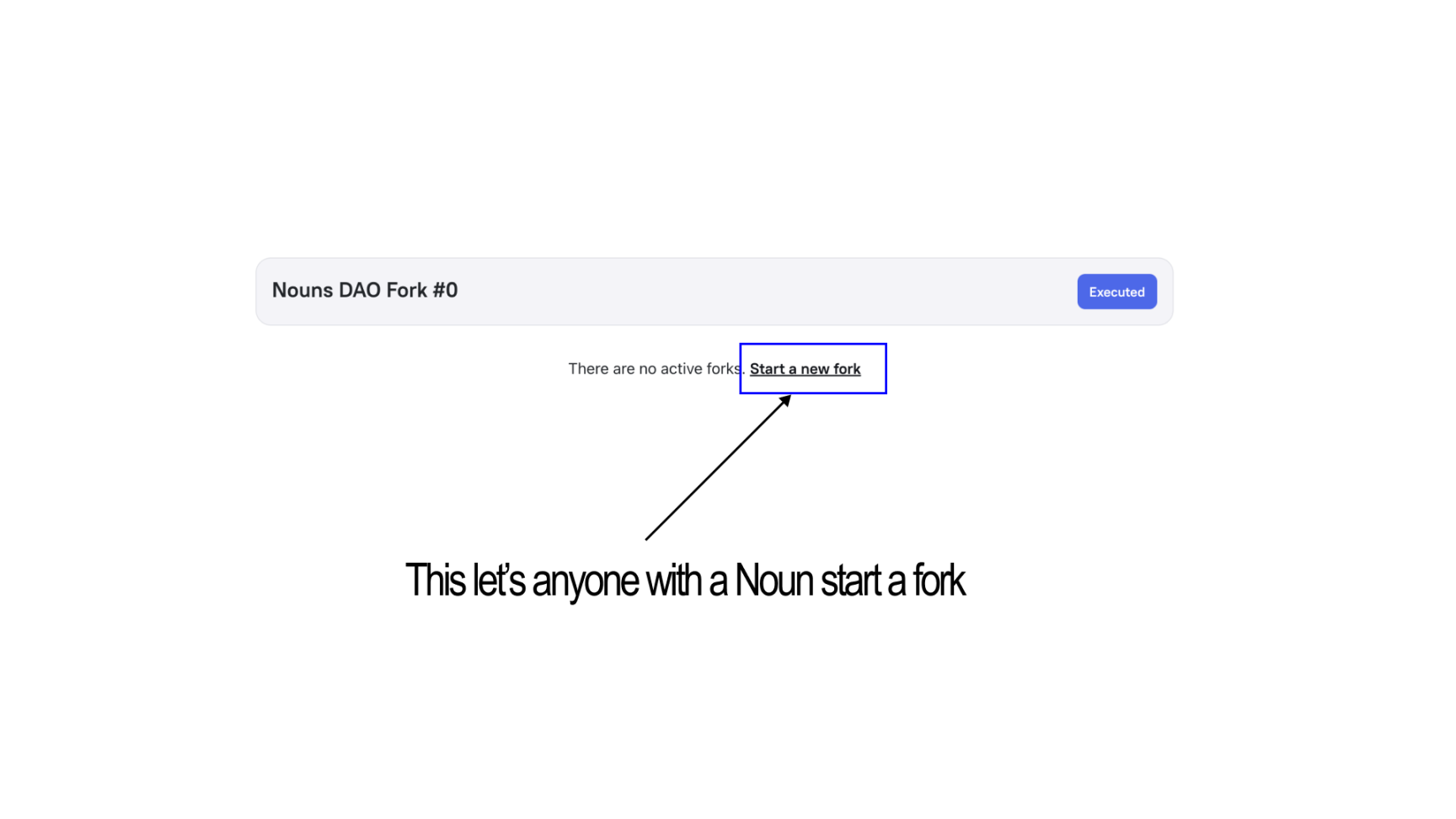 Nouns 금고는 약 28,000 ETH에 달하는 막대한 자산을 보유하고 있습니다. 누구나 github 저장소를 포크하고 자신의 DAO를 배포할 수 있지만 그렇게 한다고 해서 재무부의 ETH 양이 마법처럼 늘어나지는 않습니다. 즉, 이 일이 발생하기 전에 포크가 조직되려면 새로운 자금을 확보해야 한다는 의미입니다. 일반적으로 쉽지 않습니다. 내장된 포크를 통해 각 포크는 원래 명사의 몫을 새 포크의 금고로 가져옵니다. 포크 당시 각 명사는 약 36.6 ETH의 자산을 보유하고 있으므로 이는 공정한 종료 방법입니다. 따라서 포크된 DAO의 금고에는 14,000이 넘는 ETH가 있습니다.