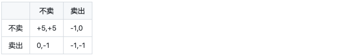 - 이익 매트릭스: A와 B가 동시에 판매되면 1단위의 이익을 잃게 됩니다. 하나만 팔면 판매자는 이익은 없고 손실도 없으나 상대방은 1단위의 손실을 입게 됩니다. 이는 주로 시장이 막 시작될 때 발생합니다.