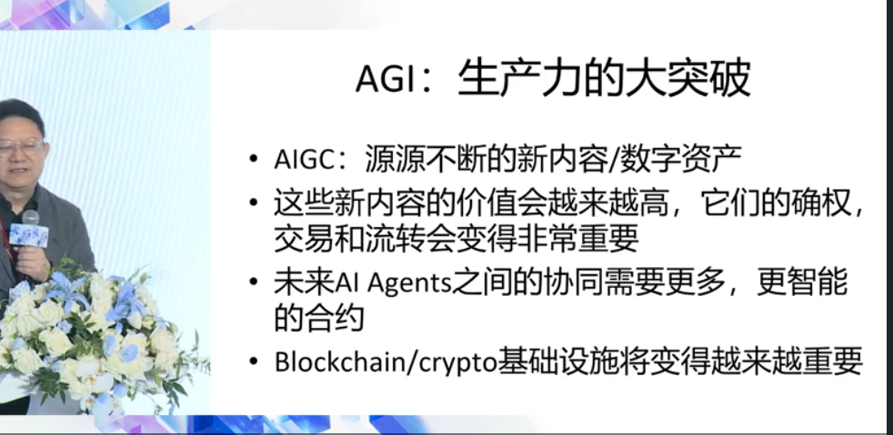 그런데 오늘 제가 특별히 강조하고 싶은 것은 세 번째 방법입니다. 작년 말부터 올해 초까지 저는 AGI(일반 인공 지능)와 암호화폐가 천생연분이라고 믿는다는 사실이 점점 더 분명해졌습니다. 암호화폐는 주로 생산 관계의 혁명을 담당하는 반면 AGI는 생산성의 기술적 혁신으로 AGI는 수많은 새로운 디지털 자산을 창출할 것입니다.