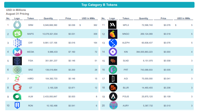 채무자의 암호화폐 보유에는 유동성 기준을 충족하지 않았거나 파산 기관에 의해 대부분 통제되는 특정 토큰이 포함됩니다. 보고 목적으로 이러한 토큰은 클래스 B로 간주됩니다. 총 1,300개 이상의 클래스 B 토큰이 있습니다.