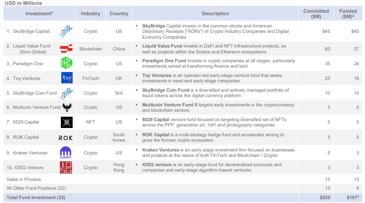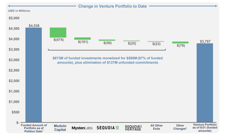 채무자는 특정 LP를 매각하고 미투자 자본을 1억 3,700만 달러 줄였습니다. 진행 중인 매각을 통해 추가로 약 800만 달러의 미투자 자본과 관련된 부채가 해제될 것입니다. 매각 포지션을 제외한 나머지 LP 보유액은 총 1억 6700만 달러로 벤처 포트폴리오의 4%에 해당합니다.