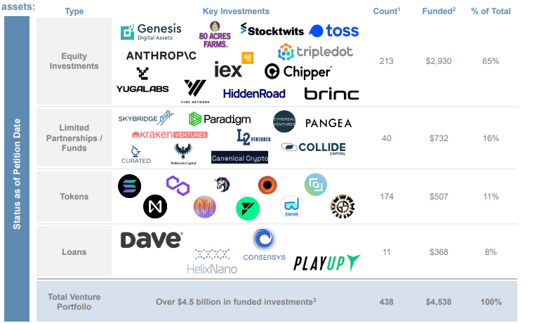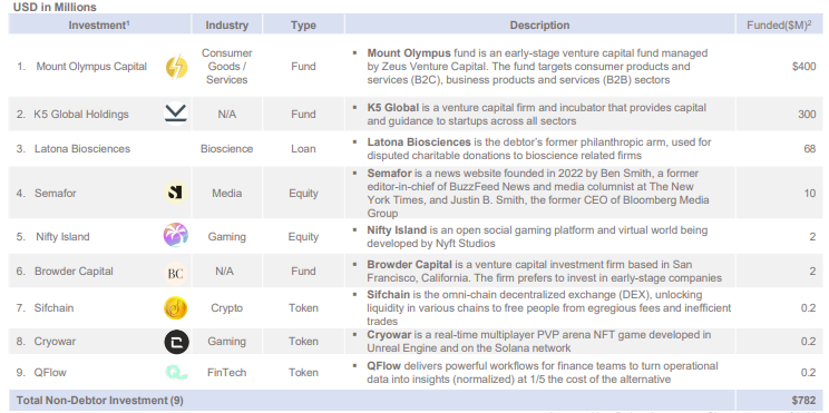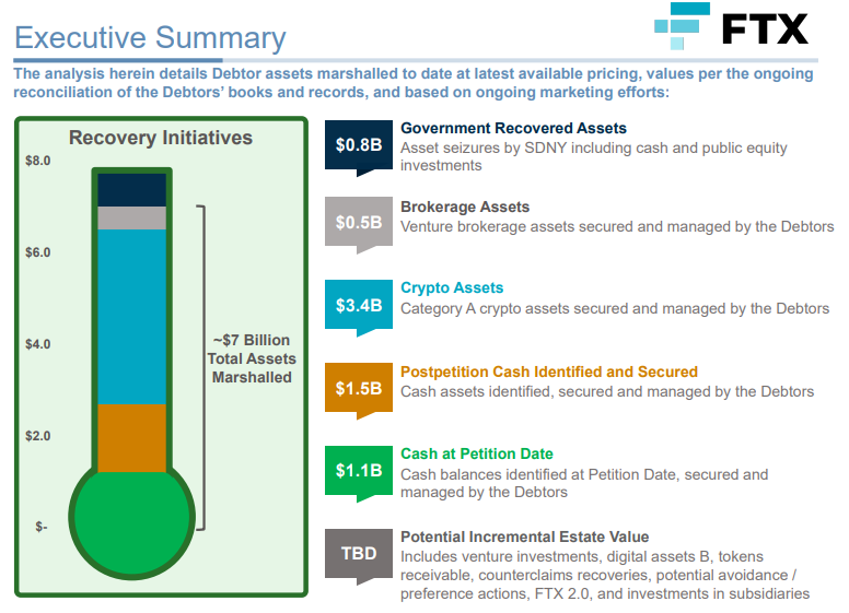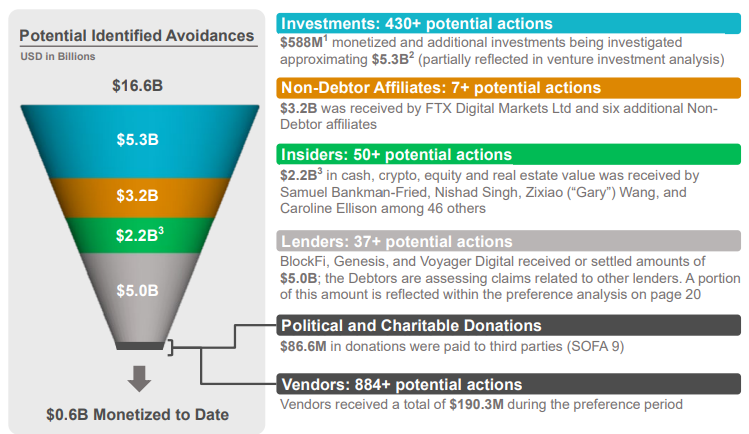 ●벤처 캐피탈, 클래스 B 암호화 자산, 수집할 토큰, 반소 손해배상, 잠재적 회피/우선 조치, FTX 2.0 및 자회사 투자를 포함한 잠재적인 추가 자산 가치.