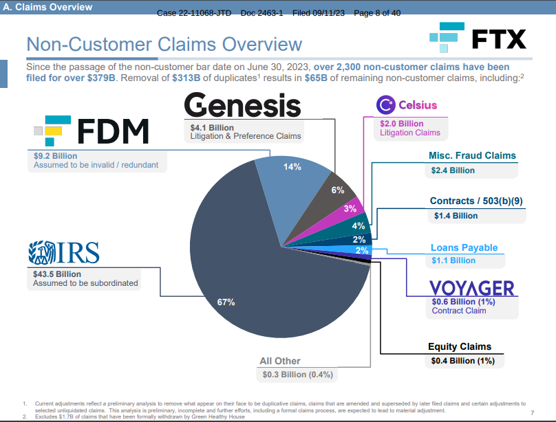 ●FTX.com과 FTX US에서 채무자는 현재까지 109억 달러의 고객 배상 청구를 기록했습니다.