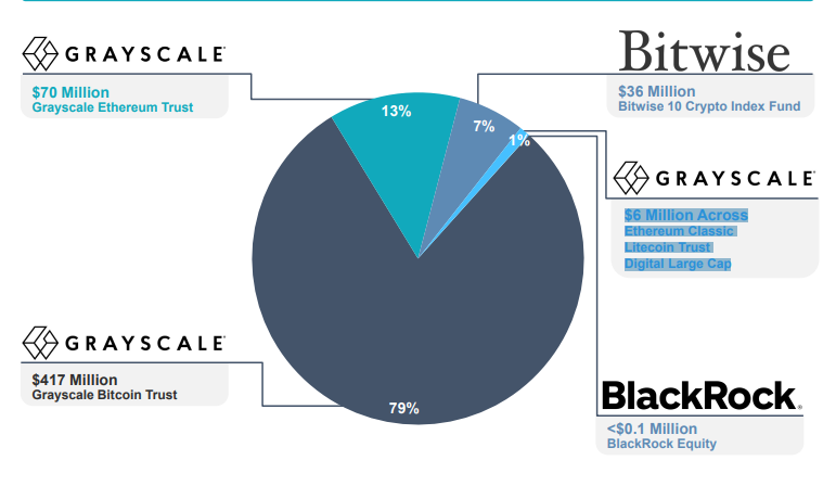 ● 그레이스케일 비트코인 트러스트(Grayscale Bitcoin Trust) 4억 1,700만 달러;