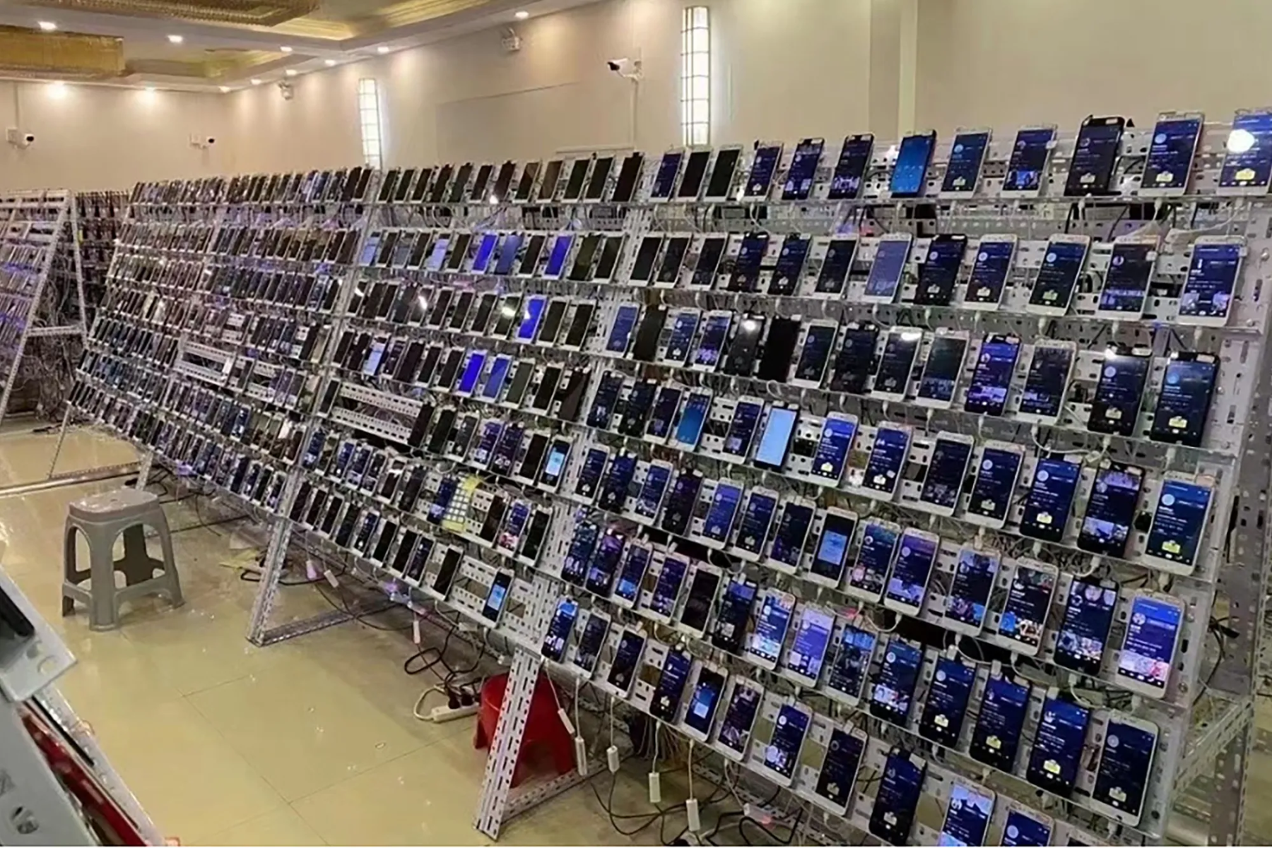 (미국 소식통에 따르면, 천즈가 관리하는 해당 장소는 1,250대의 휴대폰을 사용해 소셜 미디어 플랫폼에서 76,000개 계정을 관리하고 있었습니다. 출처: 미국 검찰청 법원 문서)