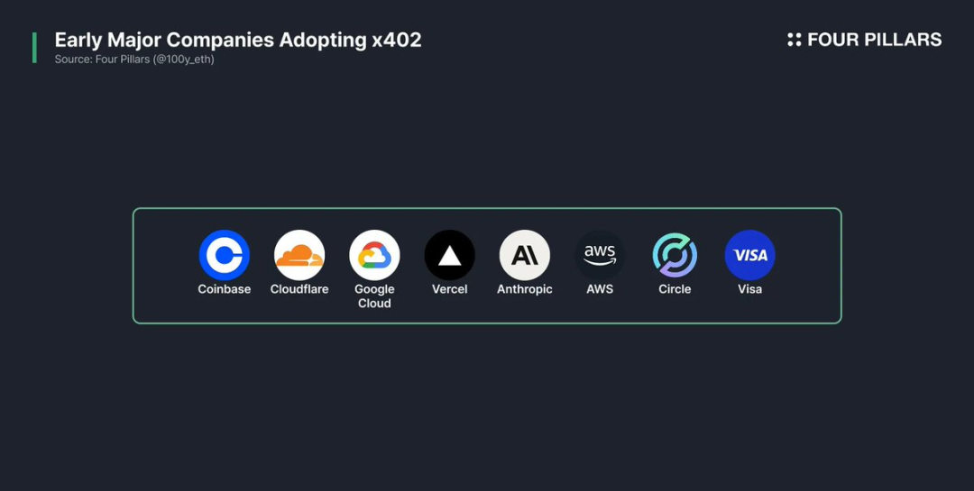 흥미로운 점은 일반적인 암호화 개념과는 달리 x402는 많은 Web2 기술 거대 기업의 관심을 끌었으며, 이들 기업은 실제로 이 프로토콜을 채택하기 시작했다는 것입니다.