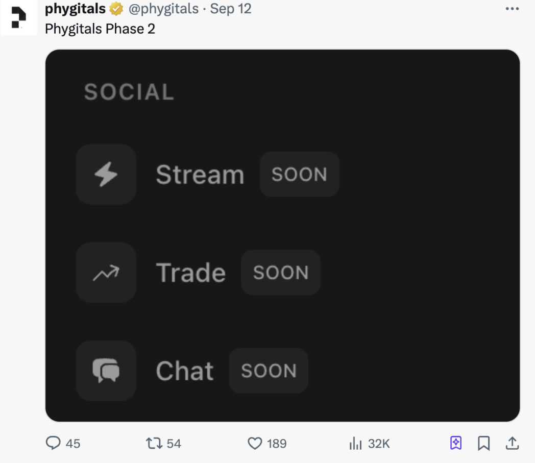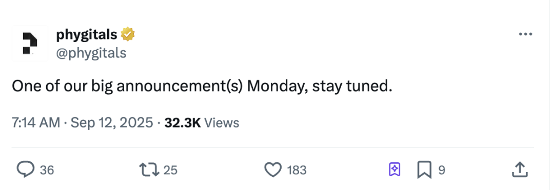 9월 12일, Phygitals는 "큰 일이 다가오고 있다"는 내용의 트윗을 게시했습니다.