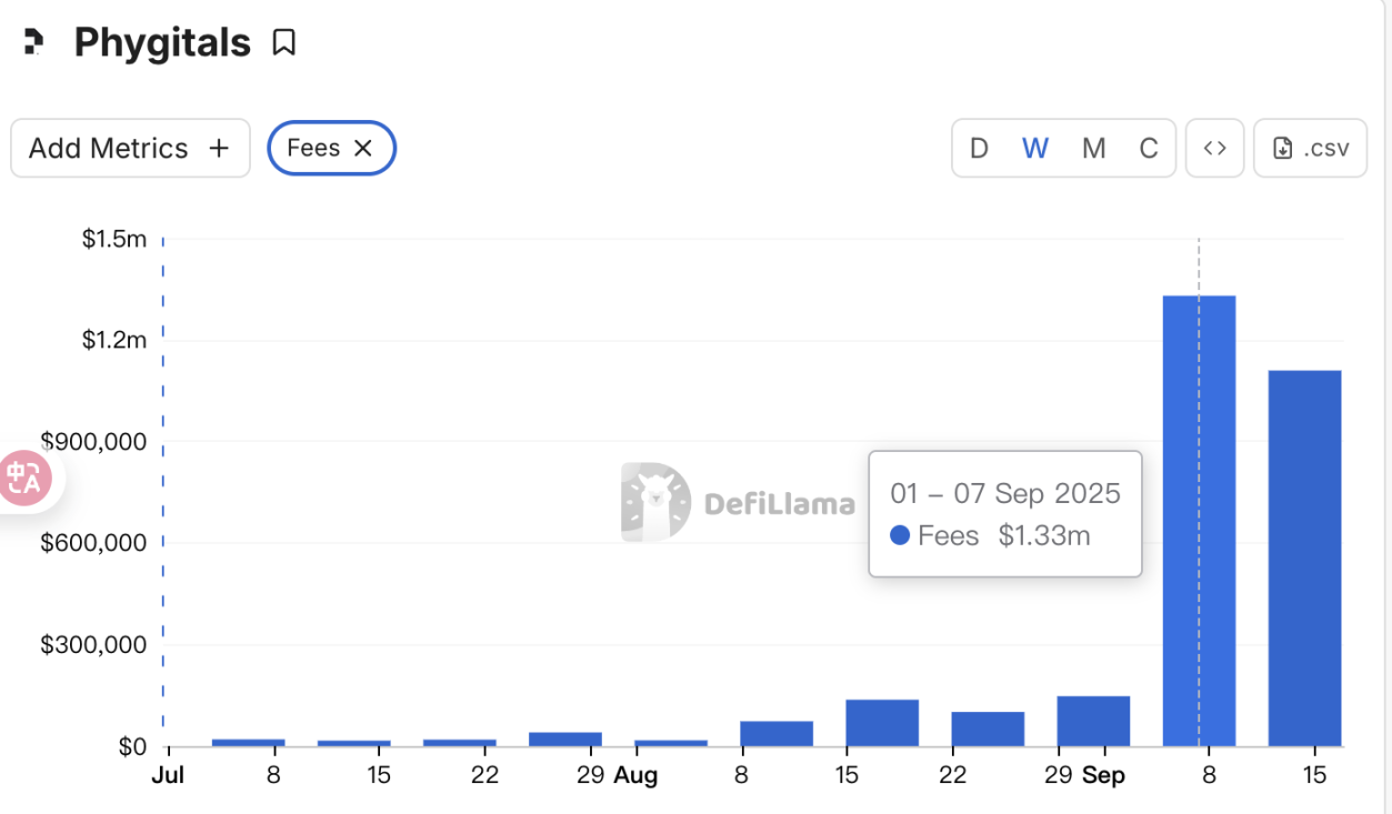 이러한 이상주의적인 끈기는 VC의 청산 압력을 피할 뿐만 아니라 프로젝트의 순수성을 보존합니다. 하지만 이는 또한 프로젝트의 성장이 전적으로 현금 흐름에 의존한다는 것을 의미합니다. 다행히도 현재의 인기를 볼 때, Phygitals 팀의 끈기는 결실을 맺었습니다. DeFillama 데이터에 따르면 Phygitals 플랫폼은 지난 2주 동안 수수료만으로 240만 달러 이상의 수익을 창출했습니다.