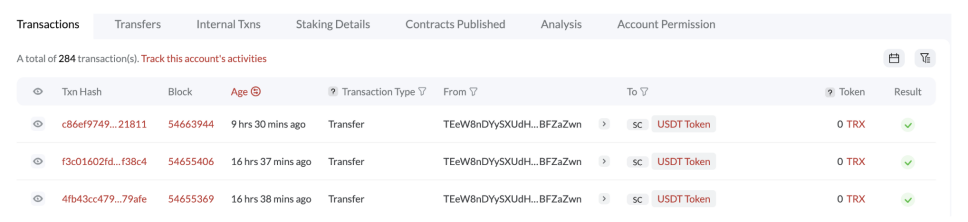 체인 기록에도 1U 출금 기록이 여러 건 나와 있는데, 이는 사용자들이 현금을 인출하려던 기록으로 의심된다.