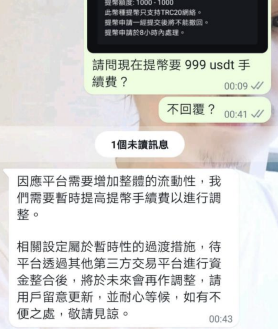 체인 데이터에 따르면 한동안 JPEX와 관련된 여러 출금 주소에 7~8시간 이상 자금 이체 기록이 없었습니다. JPEX 공식 디스코드 커뮤니티 회원들이 찍은 스크린샷에 따르면, JPEX 거래소의 출금 한도는 1,000 USDT로 제한되어 있는 것으로 추정되지만 출금 수수료는 999 USDT에 달해 실제로 사용자가 출금하는 금액은 1달러에 불과하다. .