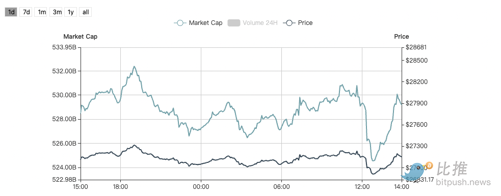 해당 소식이 발표된 후 암호화폐 시장은 기본적으로 보합세를 보였으며, 중앙은행이 이 소식을 발표한 지 몇 분 만에 비트코인 가격은 27,200달러 근처에 머물다가 잠시 1% 정도 하락한 26,900달러를 기록했습니다. 27,000달러로 지원합니다. 위에서 이더리움은 1% 미만으로 떨어졌습니다.